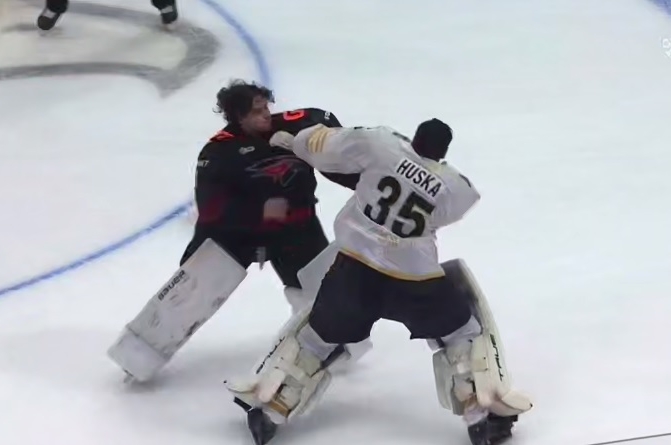 Битва вратарей закончилась вничью: каждый получил по пять минут штрафа.